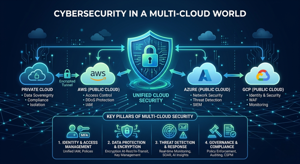 As organizations increasingly adopt multi-cloud strategies, the cybersecurity landscape has become significantly more complex. Multi-cloud environments—where businesses use services from multiple cloud providers such as Amazon Web Services, Microsoft Azure, and Google Cloud Platform—offer flexibility, scalability, and resilience. However, they also introduce new security challenges that require a more sophisticated and unified approach to risk management.